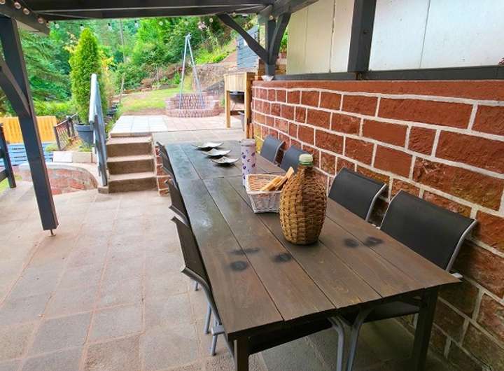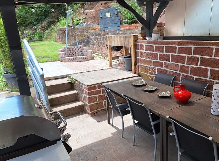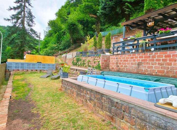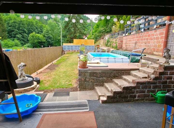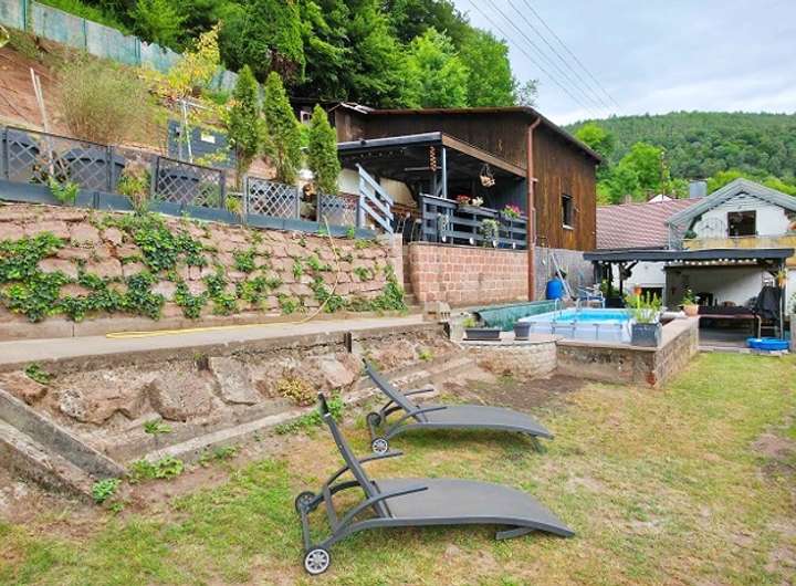 Das große Grundstück bietet vielseitige Nutzungsmöglichkeiten. Es erstreckt sich seitlich am Haus entlang und oberhalb des Gebäudes bis hin zum Pfälzer Wald. Das Areal ist komplett umzäunt, sodass eine Haustierhaltung problemlos möglich ist. Der liebevoll gestaltete Garten verfügt über mehrere Ebenen bis zur Grundstücksgrenze mit natürlich angelegten Sitz- und Aussichtsplätzen die ab der Dämmerung über ein Beleuchtungssystem eine wunderschöne Abendstimmung erzeugen.