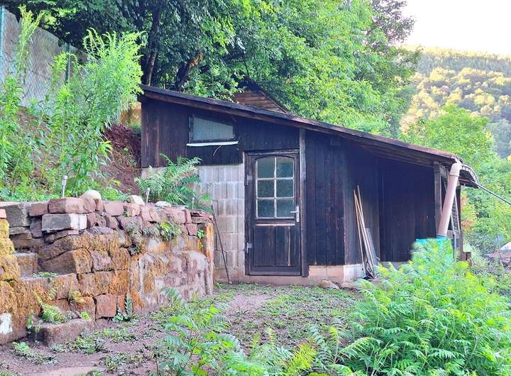 - eine Holzhütte am oberen Grundstücksende