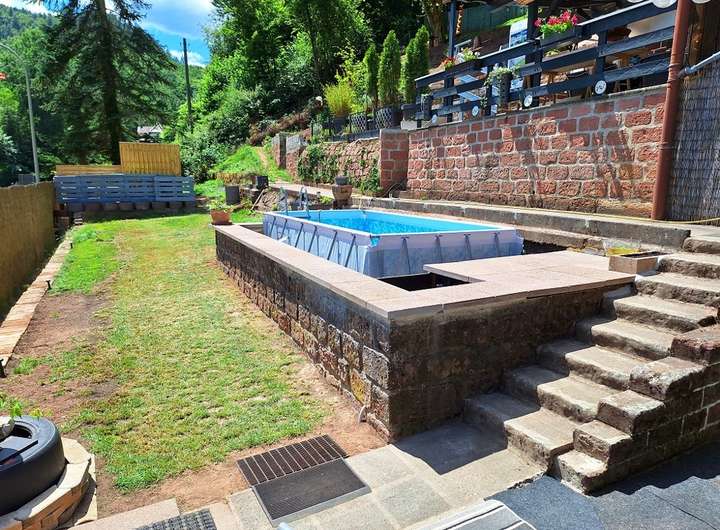 - Pool im Boden integriert (4m x 2m)