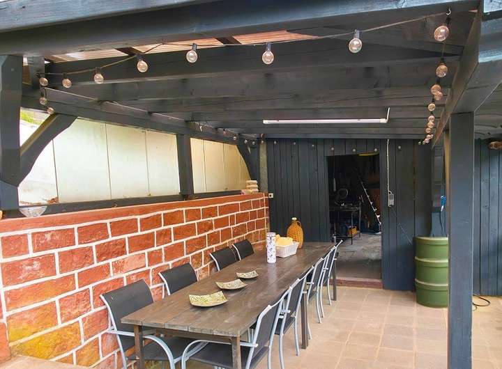 - eine geräumige Werkstatt im Außenbereich/Garten