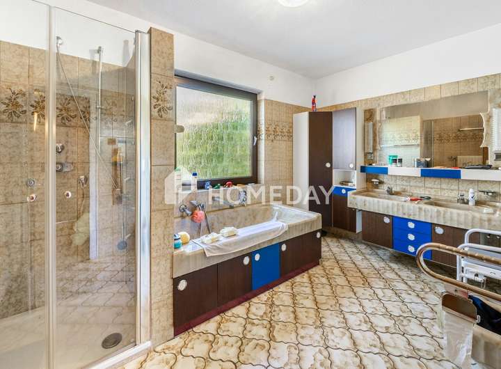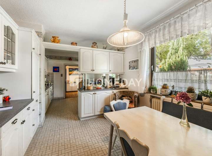 Dieses im Jahr 1960 erbaute Einfamilienhaus überzeugt durch eine großzügige Raumaufteilung, stetige Modernisierungen und ein gepflegtes Wohnumfeld. Mit rund 143 Quadratmeter Wohnfläche, verteilt auf acht Zimmer und drei Stockwerke, bietet die Immobilie viel Platz für eine Familie und flexible Nutzungsmöglichkeiten. Der großzügige Wohn- und Essbereich besticht durch helle Fensterfronten und den direkten Zugang zur Terrasse. Hier lässt sich der Blick in den gepflegten Garten genießen, der mit einer Grundstücksfläche von ca. 900 Quadratmeter viel Raum für Erholung, Spiel und Freizeit bietet. Die Einbauküche ist im Kaufpreis enthalten und bildet das Herzstück für den Familienalltag. Zusätzlich stehen mehrere Schlaf- und Arbeitszimmer zur Verfügung, sodass sich Wohnen, Homeoffice und Rückzugsräume bestens kombinieren lassen. Das Dachgeschoss ist ausgebaut und erweitert das Raumangebot um zusätzliche Wohn- oder Hobbyflächen. Ein Keller sorgt für viel Stauraum und zusätzliche Nutzungsmöglichkeiten. Zur Immobilie gehören zwei Garagen sowie weitere Stellplätze, die komfortables Parken gewährleisten. Die Ausstattung entspricht einem soliden Standard, die Immobilie befindet sich in einem laufend renovierten und gepflegten Zustand und wird derzeit vom Eigentümer bewohnt. Dieses Einfamilienhaus bietet eine perfekte Kombination aus großzügigem Platzangebot, gepflegtem Zustand und attraktiver Lage – ideal für Familien, die eine zentrale und dennoch ruhige Wohnsituation mit viel Raum zur Entfaltung suchen.