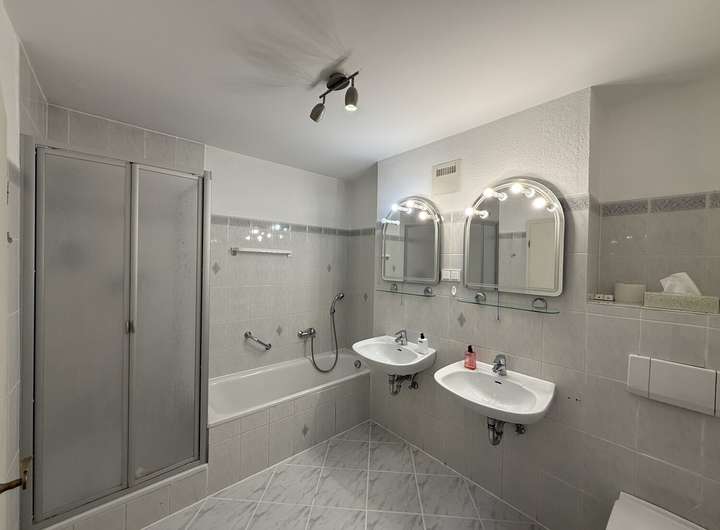 - Badezimmer mit Wanne, Dusche und Doppelwaschbecken