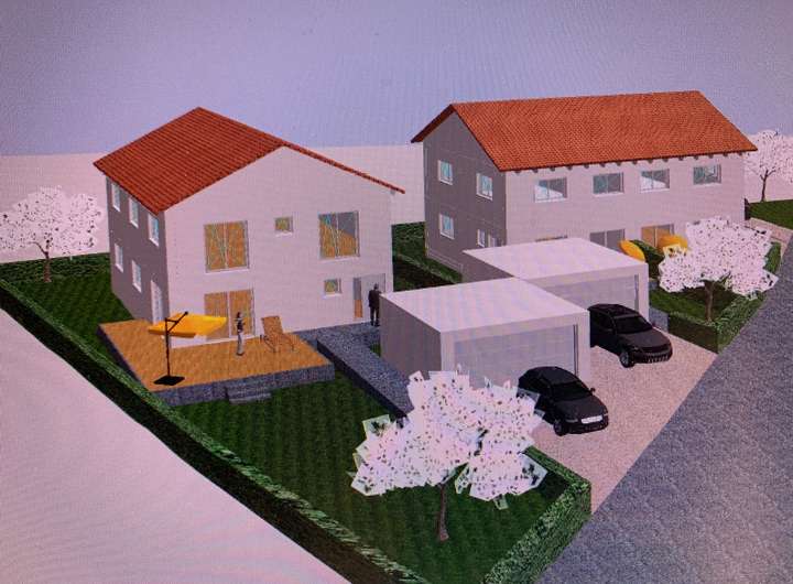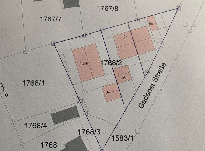 Im beil. Lageplan ist ein Planungsvorschlag für 2 DHH und einem EFH - Parzellen Größe frei wählbar
