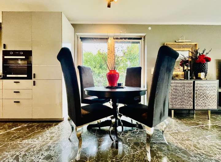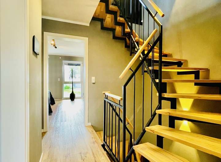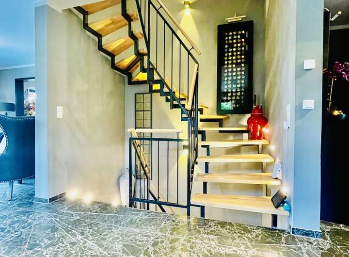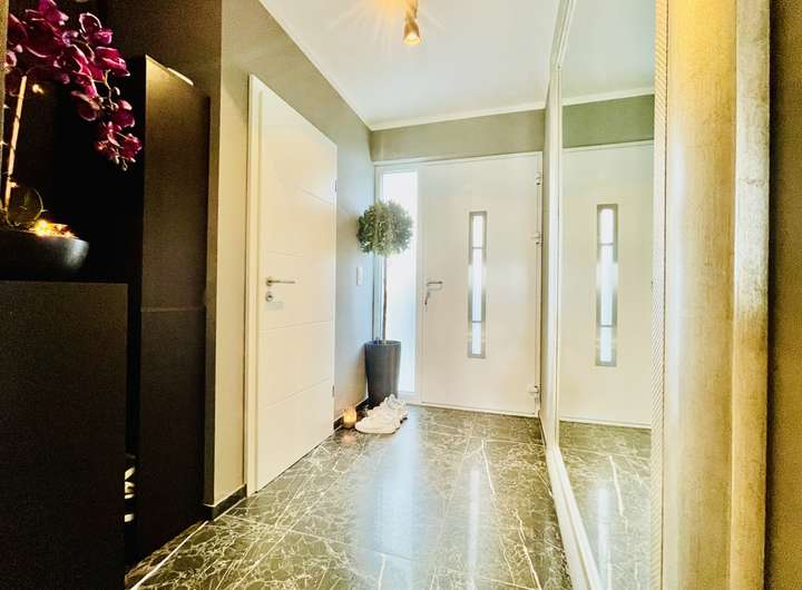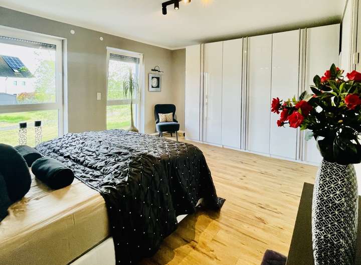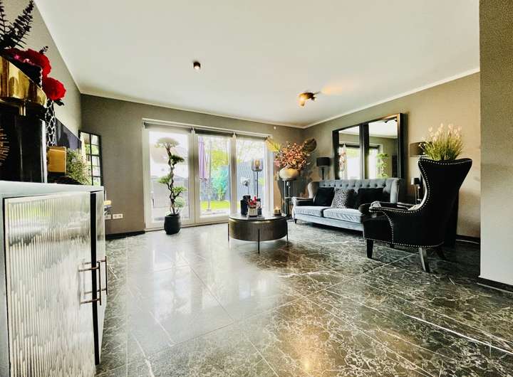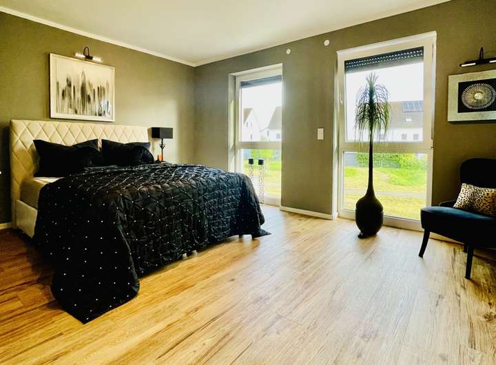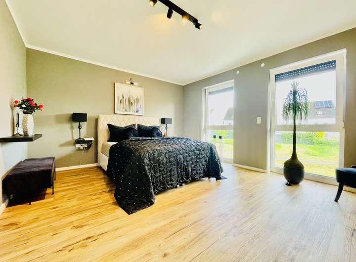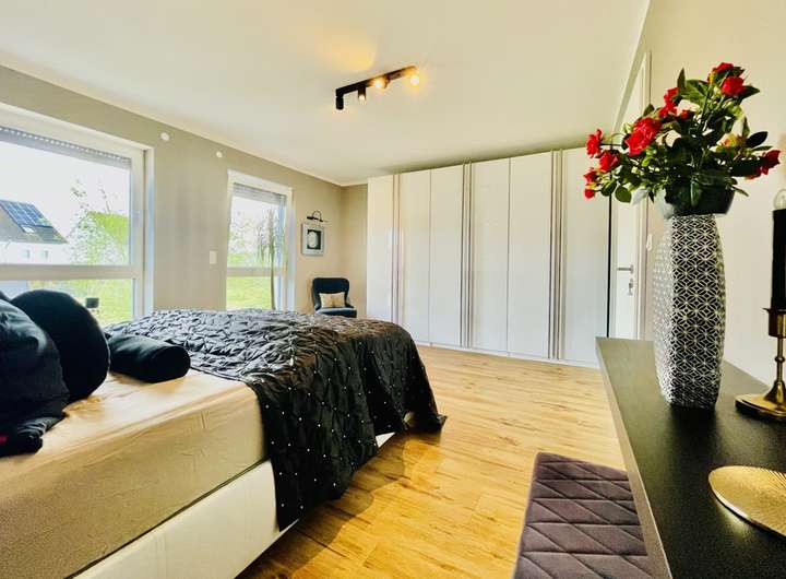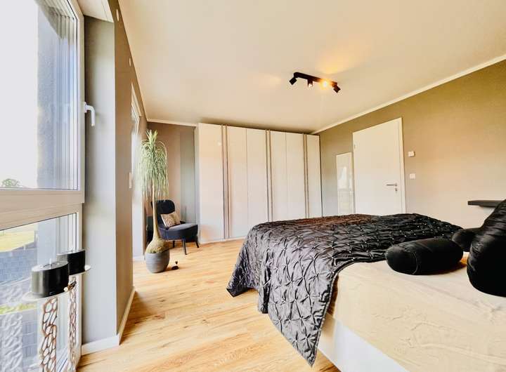 Die Bodenbeläge aus hochwertigen Fliesen und Vinyl sowie große Kunststofffenster mit Isolierverglasung verleihen dem Haus einen hellen und freundlichen Charakter. Alle Fenster sind zudem mit elektrischen Rollläden ausgestattet.