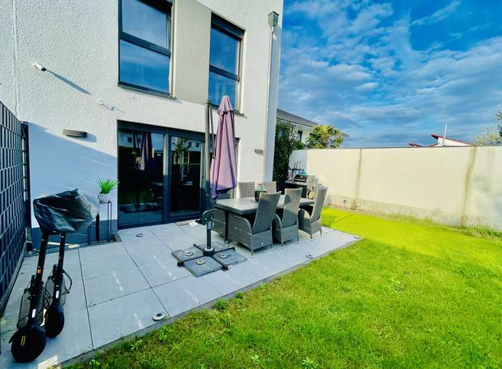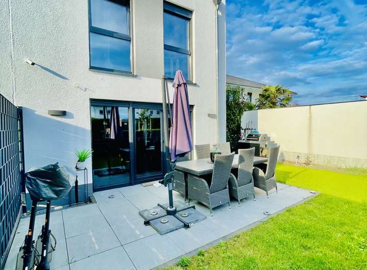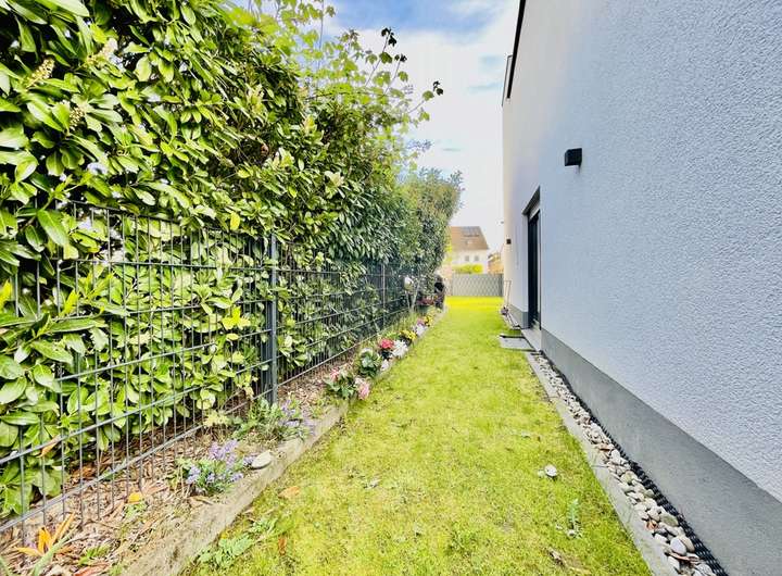 Die einladende Terrasse und der pflegeleichte Garten bieten viel Raum für Erholung und gesellige Stunden. Ein Zaun mit Sichtschutz gewährleistet Ihre Privatsphäre.