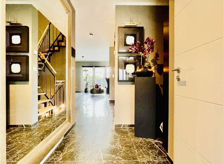 Das moderne und zugleich charmante Anwesen erstreckt sich über drei Stockwerke und bietet etwa 168 m² Wohn-/ und Nutzfläche, gelegen auf einem rund 170 m² großen Grundstück.