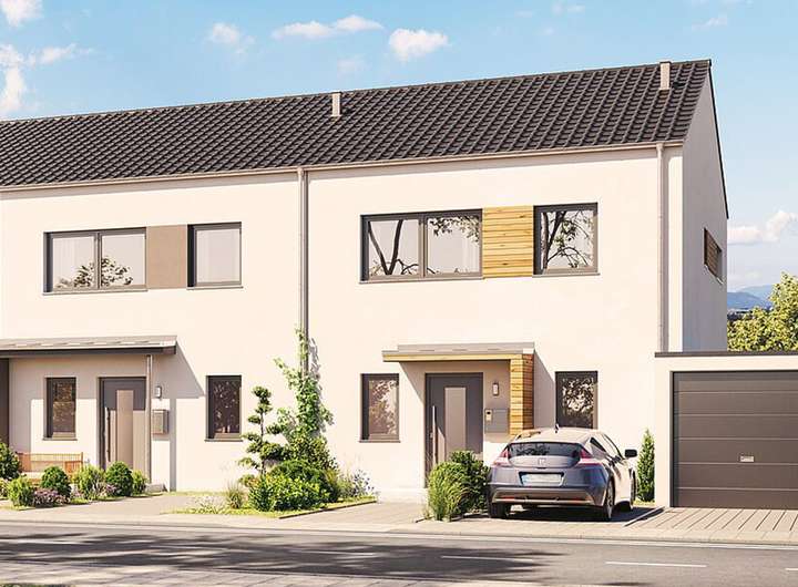 Die Bebauung ermöglicht familienfreundliches Wohnen mit Garten und Stellplätzen und verbindet moderne Architektur mit energieeffizienter Bauweise.