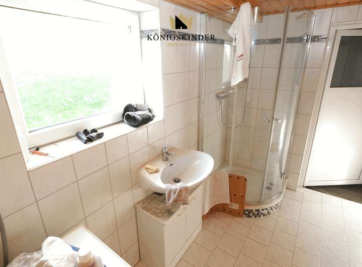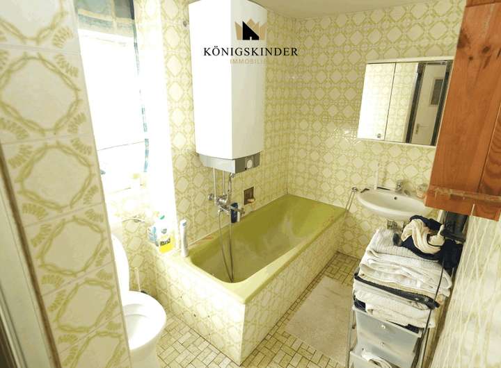 Das Bad im Anbau ist modern, das im Haus dürfte aus den 60/70er Jahren stammen, leider gibt es darüber keine Unterlagen und keine Grundrisse. Ebenso ist eine Wohn- und Nutzflächenberechnung erst noch zu erstellen.