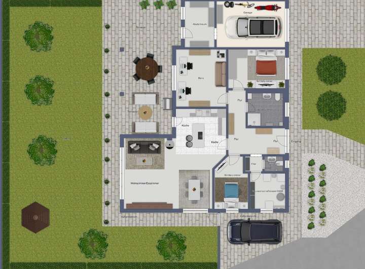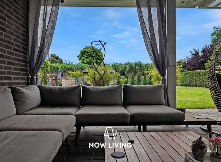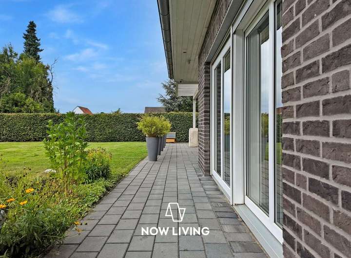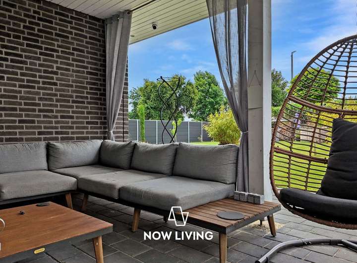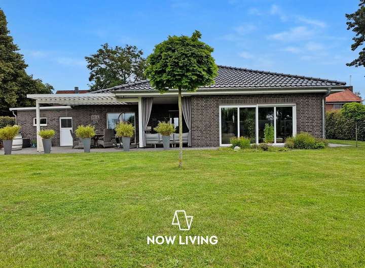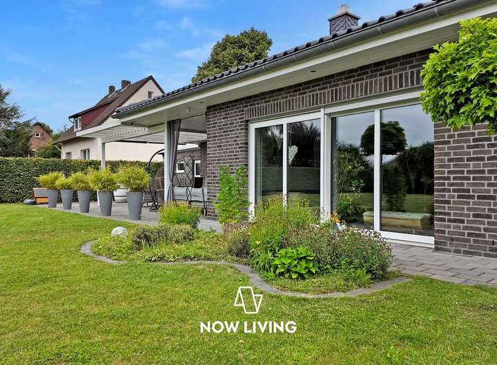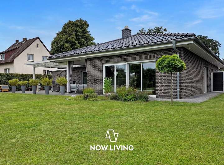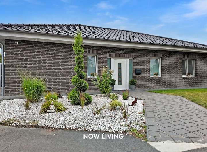 Dieses besondere Einfamilienhaus überzeugt durch eine harmonische Verbindung aus modernem Wohnkomfort und einem durchdachten, barrierefreien Konzept. Der lichtdurchflutete Bungalow wurde mit viel Liebe zum Detail geplant und mit hochwertigen Materialien sowie intelligenter Technik ausgestattet – ideal für alle, die Wert auf Stil, Komfort und Funktionalität legen. Im Inneren erwartet Sie ein smart vernetztes Zuhause: Über das KNX-System lassen sich Heizung, Rollläden und Außenanlagen bequem steuern. Die durchgängige Fußbodenheizung, gespeist durch effiziente Nahwärme, sorgt ebenso wie die dreifach verglasten Fenster für angenehmes Raumklima. Pflegeleichte Steinböden unterstreichen das elegante Ambiente. Die luxuriöse Einbauküche öffnet sich zum großzügigen Wohnbereich, in dem ein Kamin für behagliche Stunden sorgt. Das edle Badezimmer mit begehbarer Dusche bietet Wellness-Feeling im Alltag. Auch der Außenbereich lädt zum Verweilen ein: Auf der großen Terrasse mit Pergola genießen Sie Ruhe und Privatsphäre – ergänzt durch Highlights wie Badefass und Sauna. Ein hochwertiger Sichtschutzzaun, automatische Bewässerung, Mähroboter sowie Videoüberwachung sorgen für Sicherheit, Ordnung und Entspannung ohne Aufwand. Die Wallbox rundet das zukunftsfähige Gesamtpaket ab. Dieses Haus ist mehr als nur ein Zuhause – es ist ein Lebensraum mit Charakter. Die perfekte Symbiose aus moderner Technik, stilvollem Design und hoher Lebensqualität macht diese Immobilie zu einem seltenen Fundstück – ideal für Menschen, die keine Kompromisse machen wollen