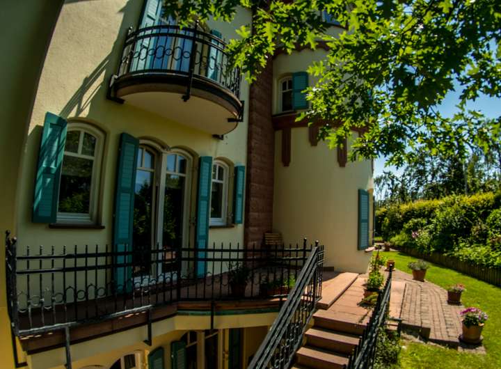 Bereits beim Betreten empfängt Sie ein großzügiges Foyer, das mit seinen Fresko-Wandmalereien und der offenen Raumgestaltung einen eindrucksvollen ersten Eindruck hinterlässt. Die Villa ist geprägt von einer einmaligen Architektur, die stilvolle Repräsentation mit wohnlicher Behaglichkeit verbindet und damit ideale Voraussetzungen für Empfänge, festliche Anlässe oder das gesellige Beisammensein mit Freunden und Gästen schafft.