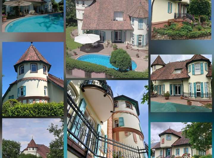 Das Anwesen besticht durch seine außergewöhnliche Architektur mit Fresko-Wandmalereien und großzügigem Foyer, ideal für Empfänge und stilvolle Veranstaltungen. Der Wohnbereich erstreckt sich über mehrere Ebenen und überzeugt mit edlen Materialien wie Naturstein, Granit und Kirschholz. Highlights sind ein offener Kamin, eine Bar sowie die bestens ausgestattete Küche.