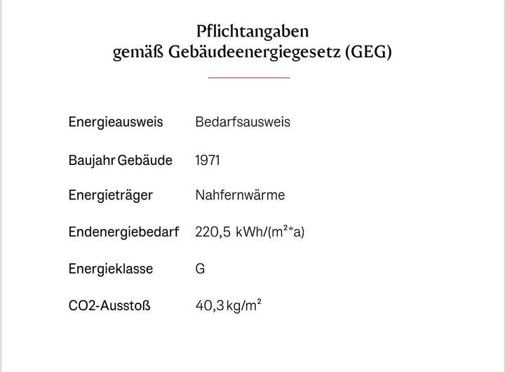 | Energieverbrauchskennwert | 220,5 kWh/(m²*a) |