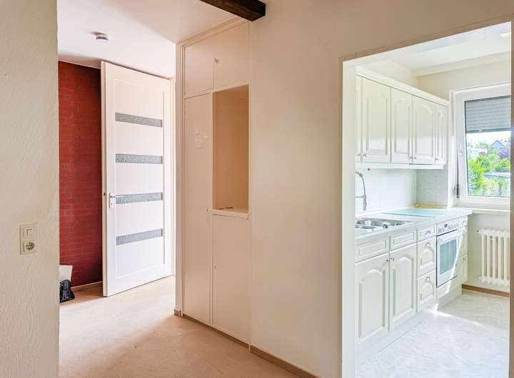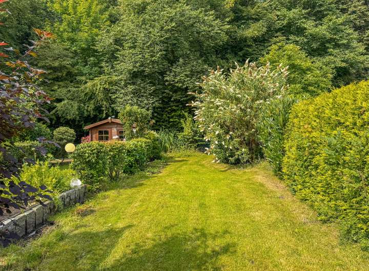 Dieses gut geschnittene Reihenmittelhaus aus dem Jahr 1971 überzeugt mit ca. 106 m² Wohnfläche, verteilt auf fünf Ebenen und einem durchdachten Grundriss, der Komfort und Wohnqualität vereint. Auf einem liebevoll angelegten, ca. 206 m² großen Grundstück in hinterer Reihe genießen Sie hier Ruhe und Privatsphäre. Bereits der einladende Eingangsbereich vermittelt einen ersten Eindruck der Helligkeit, die sich durch das gesamte Haus zieht. Vom Flur aus erreichen Sie den offen gestalteten Essbereich mit direktem Zugang zur gepflegten Küche mit integrierter Einbauküche sowie ein Tageslicht Gäste-WC. Über wenige Stufen gelangen Sie in das großzügige Wohnzimmer mit Zugang zur sonnigen Terrasse und Blick in den idyllischen Garten. Große Fensterfronten lassen viel Tageslicht herein und schaffen eine freundliche Wohnatmosphäre. Das Obergeschoss beherbergt ein Kinderzimmer mit direktem Balkonzugang sowie ein weiteres, flexibel nutzbares Zimmer, welches ebenfalls auf den Balkon führt. Eine praktische Nische bietet zusätzlichen Stauraum. Über weitere, wenige Stufen erreichen Sie das Dachgeschoss. Hier erwarten Sie ein helles Tageslicht-Vollbad, ein Flur mit integriertem Einbauschrank sowie ein geräumiges Schlafzimmer. Die Immobilie ist teilunterkellert und verfügt hier über einen Heizraum sowie einem Abstellraum. Beheizt wird das Haus über Nahfernwärme. Die zweifach verglasten Fenster stammen größtenteils aus dem Jahr 2003 und sind mit Außenjalousien ausgestattet. Der gepflegte Garten ist mit viel Liebe zum Detail gestaltet und bietet direkten Zugang zur Aue, perfekt für Spaziergänge und Naturgenuss. Ein an die Terrasse angrenzender Abstellbereich, eine Drainage sowie eine großzügige Garage mit elektrischem Tor runden dieses attraktive Angebot ab. Rundum eine Immobilie mit Charme, welche wir Ihnen gerne persönlich im Rahmen einer Besichtigung vorstellen möchten.