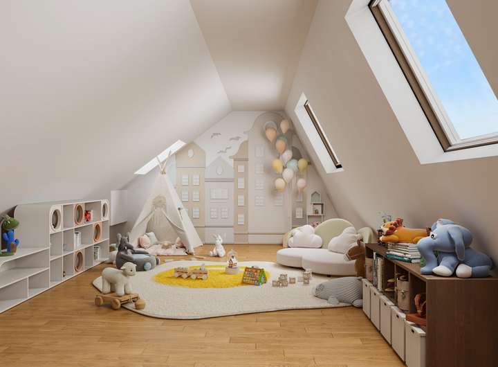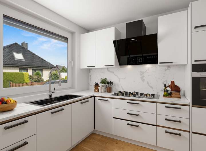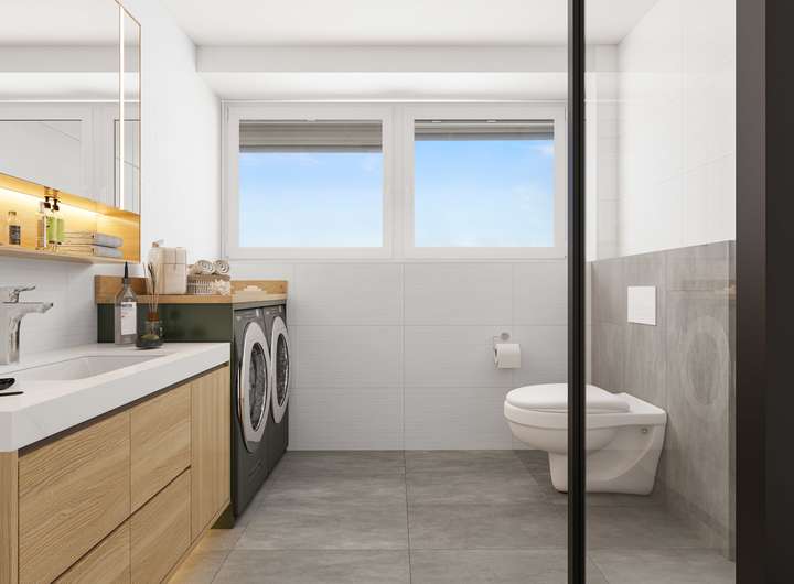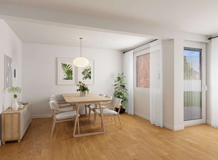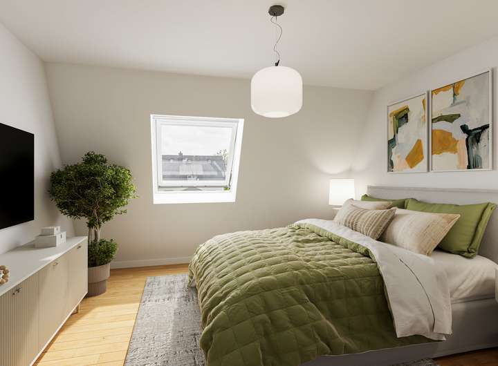 Bei den gezeigten Abbildungen handelt es sich um Visualisierungen, die der tatsächlichen Raumstruktur 1:1 entsprechen, jedoch nicht den aktuellen Ist-Zustand darstellen. Sie zeigen beispielhaft, wie das Objekt nach der Fertigstellung aussehen kann.