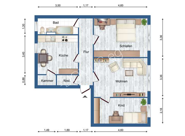 Vermietet wird eine 3 Zimmer Wohnung im 2.OG links. Die Wohnung wurde vollständig renoviert. Der zentrale Flur erschliesst Küche, Bad, 1x Abstellraum im Flur, 1x Abstellraum in der Küche, Schlafzimmer und Wohnzimmer. Alle Zimmer Küche und Bad haben Kunststoff-Isolierglasfenster. Die Zimmer sind mit PVC in Laminatoptik ausgestattet. Küche und Bad mit PVC-Kunststoffboden. Die Wohnung verfügt über Kabelanschluss, Telefon und Wechselsprechanlage. Eine neue Einbauküche mit Fliesenspiegel kann in Absprache vor Bezug eingebaut werden.