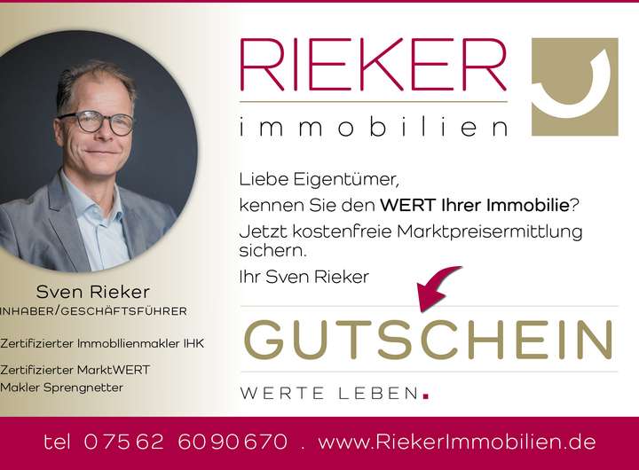 Mit Ihrer Anfrage erkennen Sie die Vereinbarung an, im Falle eines Kaufs die ausgewiesene Courtage inkl. MwSt. nach notarieller Beurkundung an Rieker Immobilien zu leisten. Das Expose stellt kein vertraglich bindendes Angebot dar.