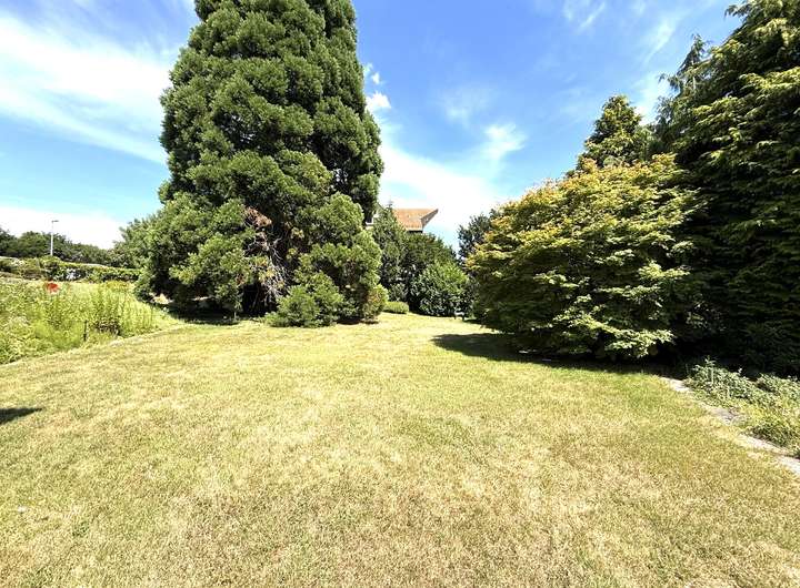 Das Grundstück grenzt an ein Einfamilienhaus an, das auch zum Verkauf steht.