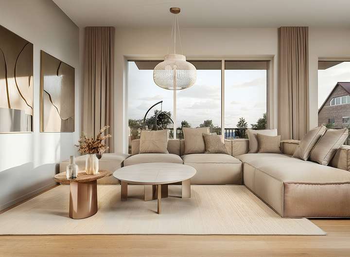 Die exklusiven Eigentumswohnungen überzeugen durch eine moderne, umweltfreundliche Bauweise nach KfW-40 Standard. Große Fenster bieten viel Licht und weite Ausblicke auf den Lehnitzsee. Jede Wohnung hat einen Balkon oder eine Terrasse, die Erdgeschosswohnungen zusätzlich private Gartenflächen. Das ökologische Konzept integriert Photovoltaik und Dachbegrünung, optimiert für Regenwassermanagement und Energieerzeugung. Die Tiefgarage bietet Stellplätze mit Aufzugzugang, um barrierefreien Komfort zu garantieren. Die hochwertigen Materialien und geschmackvollen Innenräume unterstreichen die gehobene Ausstattung.