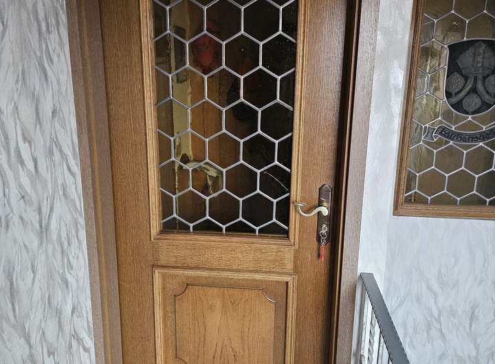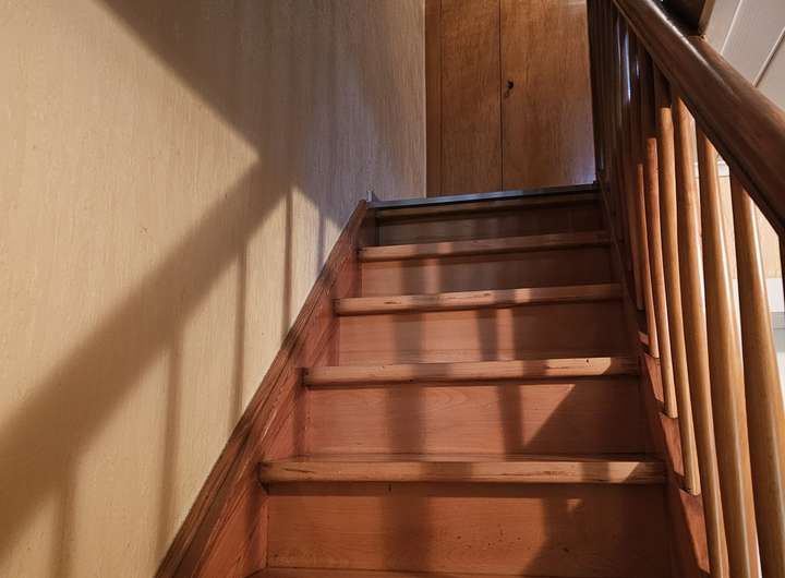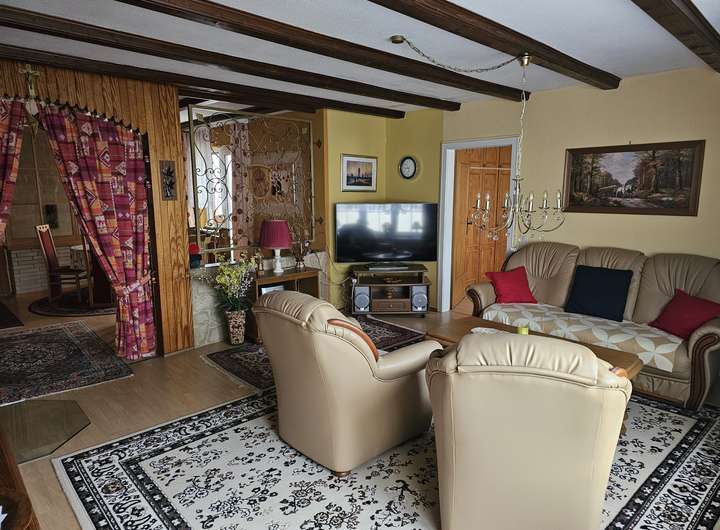 An der Straße liegt ein freistehendes Einfamilienhaus, dessen Ursprünge schätzungsweise auf 1882 zurückgehen. Es verfügt über etwa 83 m² Wohnfläche auf einem rund 198 m² großen Grundstück. Die Raumaufteilung über drei Etagen ist funktional und charmant: Im Erdgeschoss befinden sich eine separate Küche, ein gemütliches Esszimmer sowie ein Wohnzimmer mit Kamin. Ein Gäste-WC, über den Hof zugänglich, ergänzt das Erdgeschoss. Im ersten Obergeschoss gibt es zwei Schlafzimmer – eines groß, eines kleiner – sowie ein Badezimmer. Das ausgebaute Dachgeschoss bietet zwei weitere Schlafzimmer und einen kleinen Abstellraum. Der Keller ist trocken und bietet zusätzliche Nutzfläche. Beheizt wird das Haus über eine zentrale Ölheizung, die es sich mit dem angrenzenden Mehrfamilienhaus teilt.