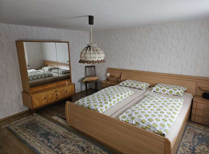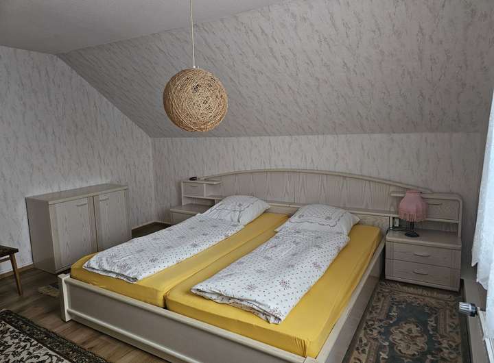 • 2 Schlafzimmer im Dachgeschoss, 2 weitere im OG (1 groß, 1 klein)