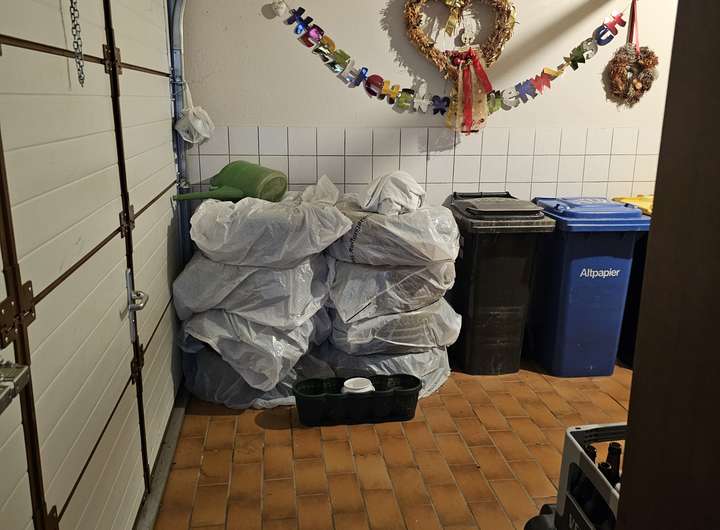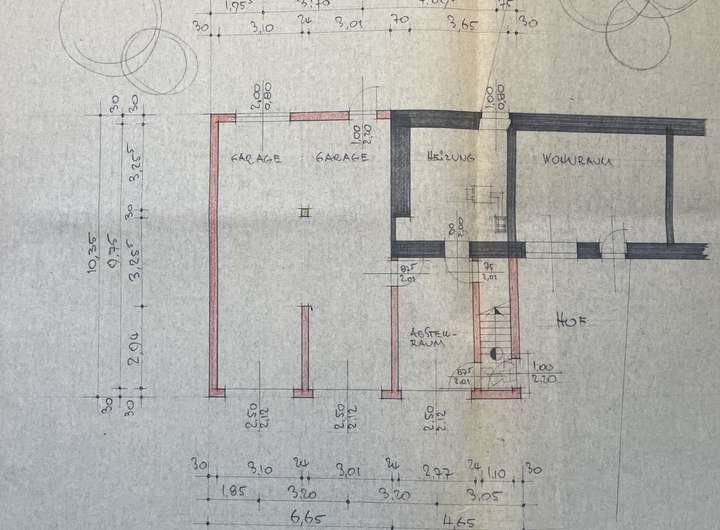 Im Erdgeschoss des Mehrfamilienhauses befinden sich außerdem eine große Garage mit zwei Toren sowie ein Lagerraum, geeignet zur Aufbewahrung von Mülltonnen, Fahrrädern oder Gartengeräten.