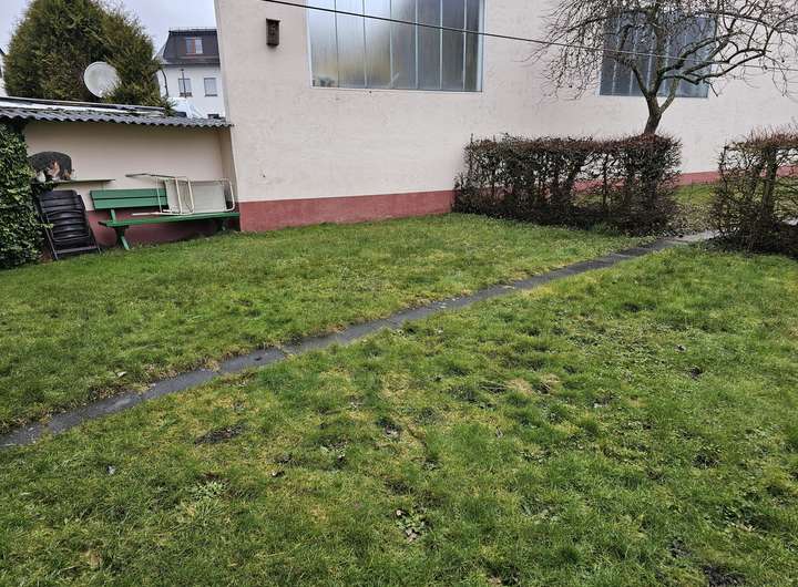 Im hinteren Grundstücksbereich steht das zweite Objekt – ein erweitertes Mehrfamilienhaus, das aus zwei Gebäudeteilen besteht. Seit 1981 wurden diese sukzessive aus- und umgebaut, sodass heute drei abgeschlossene Wohneinheiten entstanden sind. Das Gebäude bietet insgesamt ca. 244 m² Wohnfläche auf einem ca. 587 m² großen Grundstück. Eine rund 170 m² große Gartenfläche schließt sich an, am Ende befindet sich eine weitere Garage.
