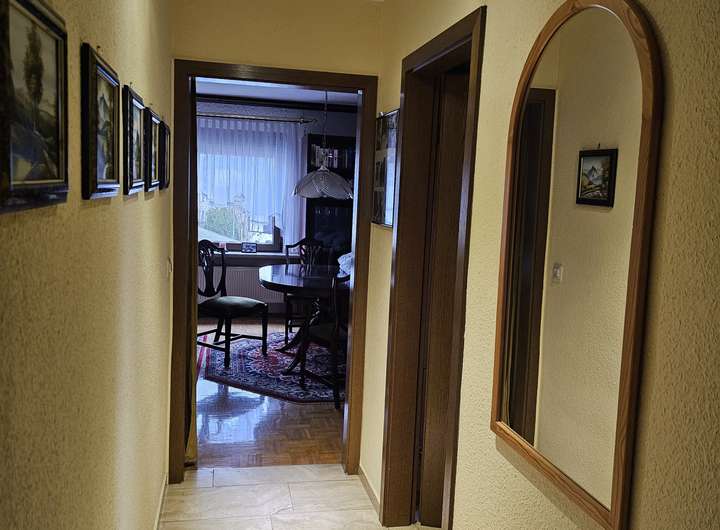 Die dritte Wohnung liegt im zweiten Obergeschoss. Sie bietet ein großes und ein kleines Schlafzimmer, eine Küche, ein Wohnzimmer sowie ein Bad mit Wanne. Über das zentrale Treppenhaus gelangt man zu einem weiteren, abgeschlossenen Balkon. Die ruhige Lage und die durchdachte Raumaufteilung schaffen ein angenehmes Wohngefühl.