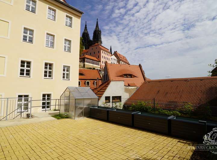 Die Wohnung befinden sich auf halbem Weg zwischen Meißner Dom und Landesgymnasium Sankt Afra – eingebettet in ein Ensemble geschichtsträchtiger Gebäude unweit des markanten Torhauses. Dieses historische Wohnhaus auf einem ca. 500 Quadratmeter großen Grundstück wurde im 16./17. Jahrhundert erbaut und mehrmals umgestaltet.