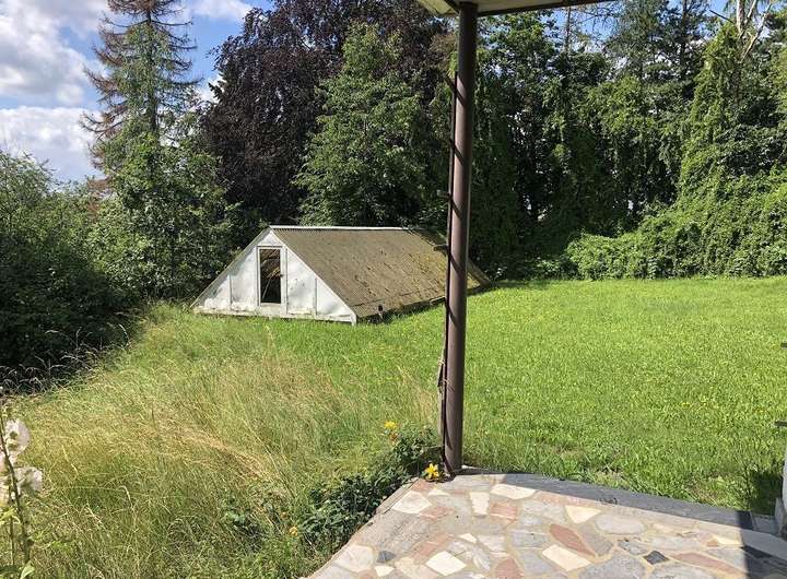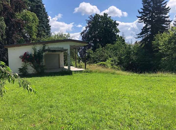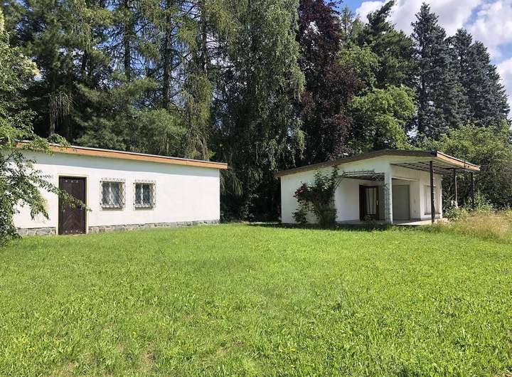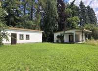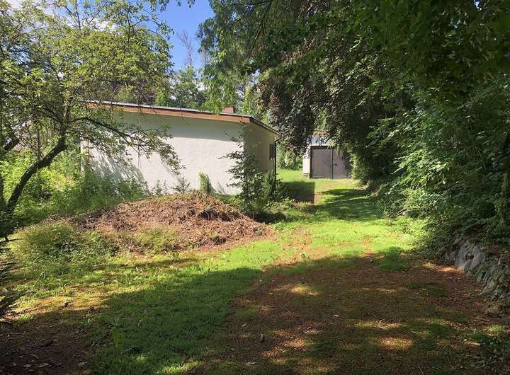 Das ca. 5.892 m² große Grundstück bietet eine Vielzahl an Gestaltungsmöglichkeiten. Das Grundstück wurde privat als Wochenenddomizil genutzt und umfasst neben der massiven Garage mit angebautem Wohnraum einen überdachten Pool und das massive Wochenendwohnhaus. Derzeit ist das Grundstück ungenutzt und die ehemals parkartig angelegten Bereiche wandeln sich in waldähnliche Freiflächen, welche derzeit über 70 Blaufichten beheimaten. Die Gebäude selbst sind modernisierungsbedürftig.