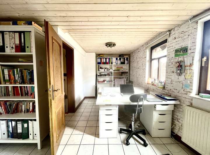Auf der ersten Ebene des Obergeschosses befinden sich zwei großzügige Zimmer, die sich beispielsweise als Kinderzimmer oder Arbeitsräume nutzen lassen. Eine gemütliche Leseecke mit Blick in den gepflegten Hof lädt zum Verweilen und Träumen ein. Über eine kleine Treppe erreichen Sie die zweite Ebene des Obergeschosses, wo ein stilvolles Duschbad sowie ein weiteres Zimmer auf Sie warten.