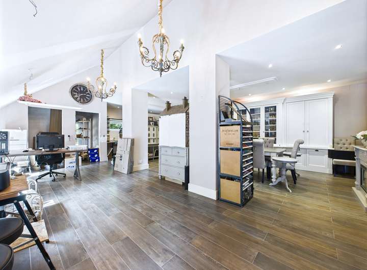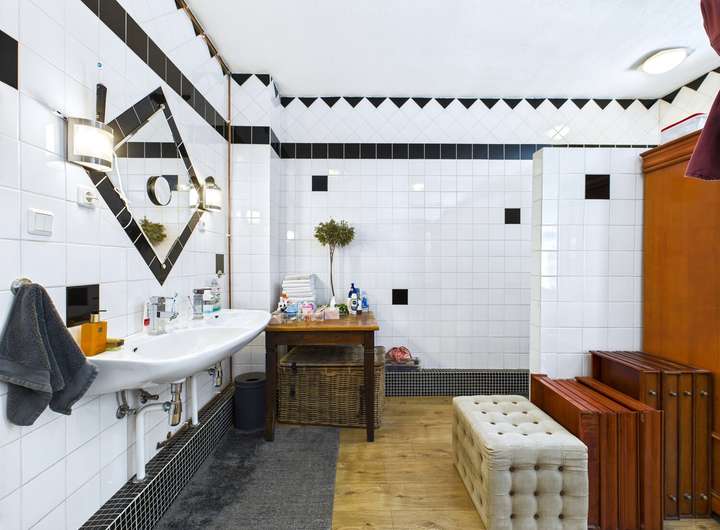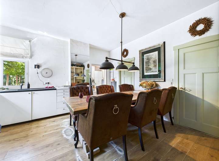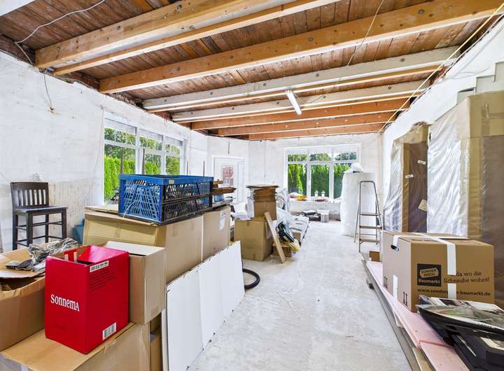 Der großzügige Wohnbereich verteilt sich auf zwei Wohneinheiten mit insgesamt ca. 282 m² Wohnfläche. Helle, weitläufige Räume bieten zahlreiche Gestaltungsmöglichkeiten für individuelles Wohnen. Elektrische Außenjalousien im Erd- und Dachgeschoss und doppelt verglaste Fenster sorgen für Komfort und energieeffizientes Wohnen. Der obere Bereich des Wohnhauses bietet Potenzial ist aber sanierungsbedürftig.