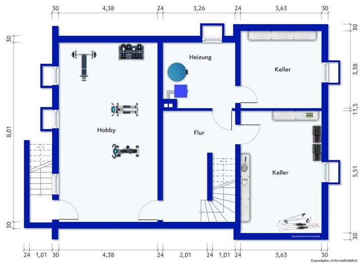 Das Haus ist vollständig unterkellert und verfügt über großzügige Zusatzflächen für Hobby, Lager oder eine spätere Erweiterung.