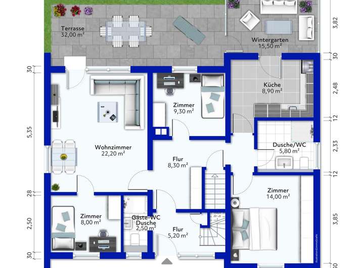 Besonders hervorzuheben ist der großzügige Garten auf einem 893 m² großen Grundstück, der Ihnen und Ihrer Familie reichlich Platz zum Entspannen, Gärtnern oder Spielen bietet. Drei Garagen, ein Wintergarten (unbeheizt, ca. 15 m²), mit automatischer Beschattungsanlage und eine sonnige Terrasse (ca. 30 m²) runden das attraktive Gesamtbild ab.