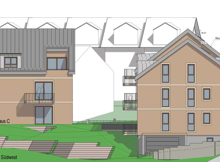 Bei der Planung wurde explizit auf viel Helligkeit in den Wohnräumen geachtet. Eine ansprechend gestaltete Außenanlage, sowie die nach Süd-West und West ausgerichteten Terrassen und Balkone runden dieses Neubauprojekt ab. Die Tiefgarage unter den Mehrfamilienhäusern bietet neben 26 Kfz-Stellplätzen auch drei Technikräume. Jeder Wohneinheit ist ein eigener, abschließbarer, Kellerraum zugeteilt.