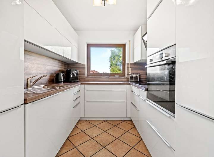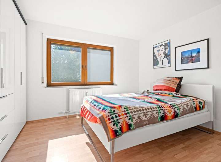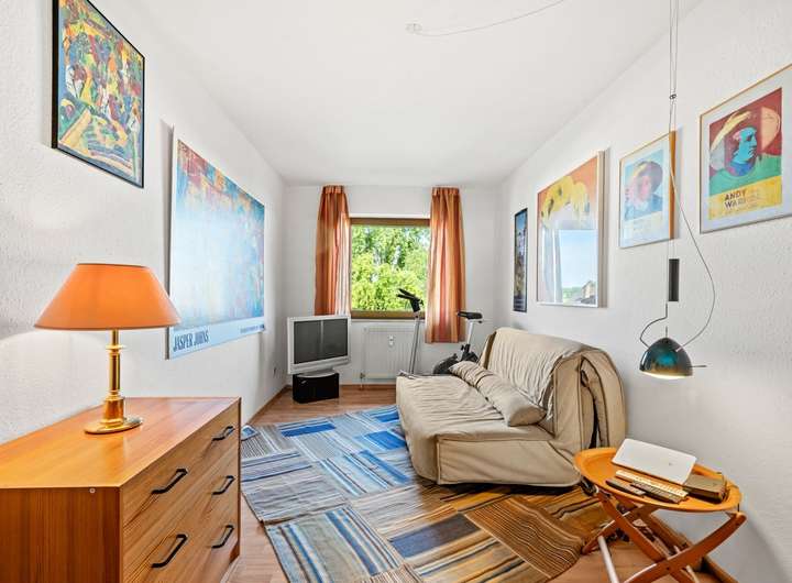 Die Wohnung überzeugt durch eine klare und praktische Aufteilung: Drei Schlafzimmer, ein Gäste-WC, ein Tageslichtbad mit Dusche und Badewanne sowie ein heller Wohn- und Essbereich mit Erker und direktem Zugang zum West-Nord-Balkon. Die separate Küche ist mit einer modernen Einbauküche aus dem Jahr 2021 ausgestattet.