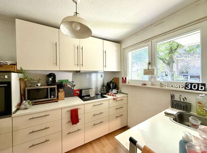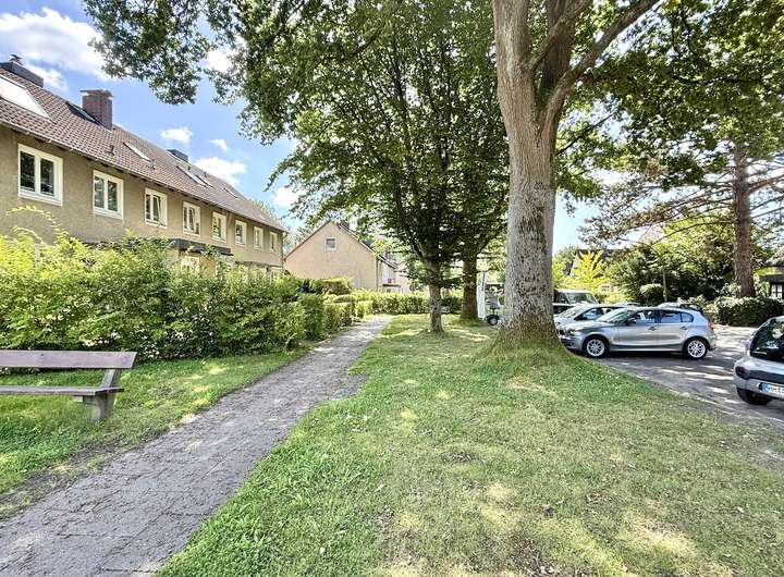 Die Nachbarschaft ist geprägt von ansprechender Architektur: Ein- und Zweifamilienhäuser, gepflegte Reihenhaussiedlungen und charmante kleine Mehrfamilienhäuser, eingebettet in alte Baumbestände und üppiges Grün. Diese Umgebung sorgt für eine ruhige, familiäre und zugleich hochwertige Wohnatmosphäre.