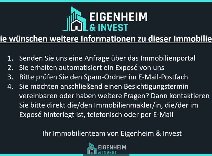 Sie haben die passende Immobilie noch nicht gefunden? Dann tragen Sie sich als Suchkunde bei uns ein und erhalten frühzeitig neue Immobilienangebote: www.eigenheim-invest.de/immobiliensuche