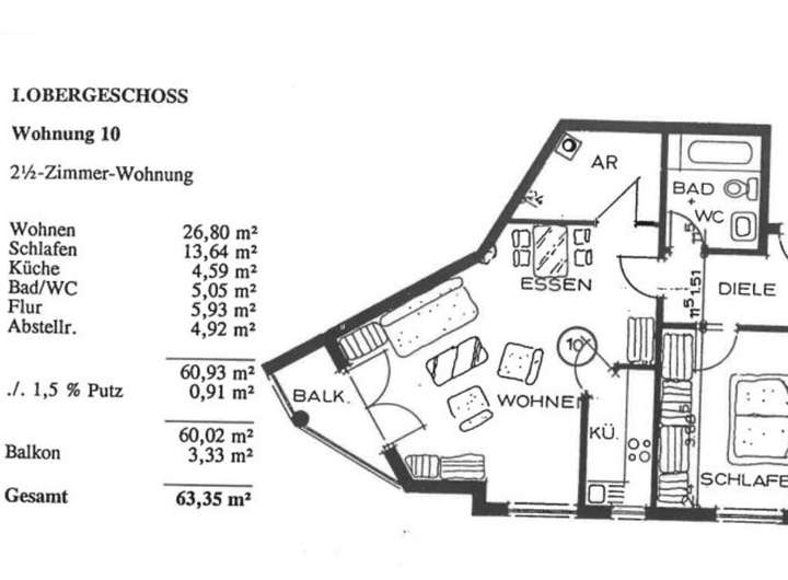 Diese gepflegte 2,5-Zimmer-Wohnung befindet sich im 1. Obergeschoss eines Mehrfamilienhauses in zentrumsnaher Lage von Singen am Hohentwiel. Mit einer Wohnfläche von ca. 63 m² bietet sie eine durchdachte Raumaufteilung und eignet sich ideal für Singles und Paare.