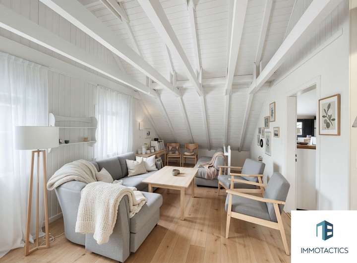 Ob Atelier, Jugendzimmer oder Gästebereich – das Dachgeschoss bringt zusätzliche Freiheit. Ein großer Wohn-/Schlafraum, ein weiteres Kleiderzimmer oder Büro, sowie ca. 40 m² Ausbaureserve bieten viel Potenzial. Gerade für heranwachsende Kinder, Großeltern oder ein ruhiges Homeoffice eine wunderbare Lösung.