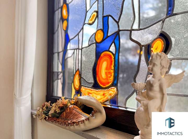 Fenster (teilweise erneuert 2017), 3-fach verglast, abschließbar, teils mit stilvollem Tiffanyglas