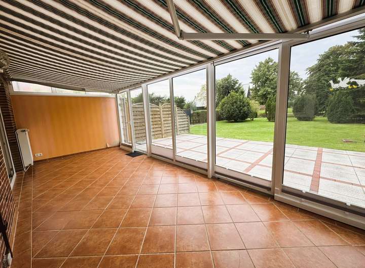 Der Wintergarten gibt einen tollen Blick ins Grüne frei. Er ist beheizt und bietet eine elektrische Markise und Plissées als Verdunklung/Sonnenschutz.