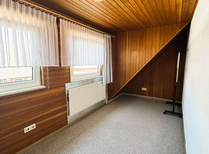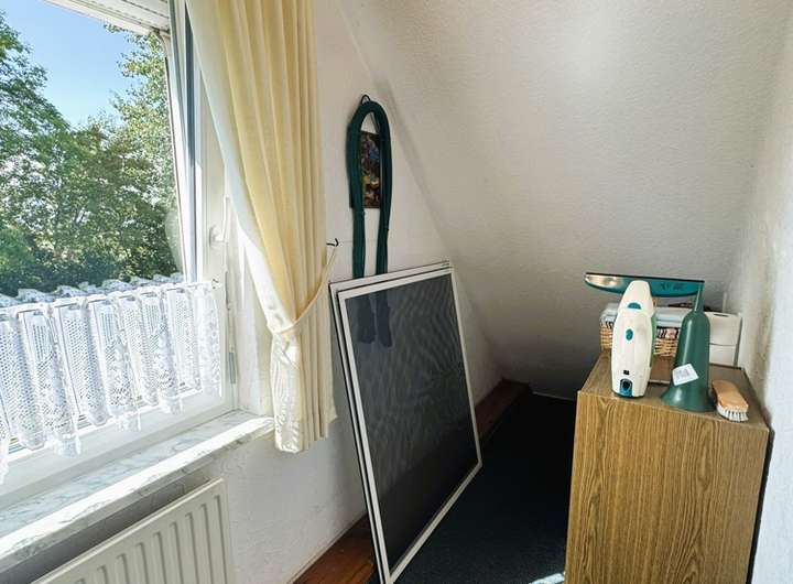Auch im Abstellraum, der sich angrenzend befindet, wurde das Fenster 2018 erneuert. Der Raum eignet sich aber auch ideal als Arbeitszimmer. Ein Heizkörper ist hier vorhanden. Über eine Bodentreppe erreicht man von hier auch den Dachboden.
