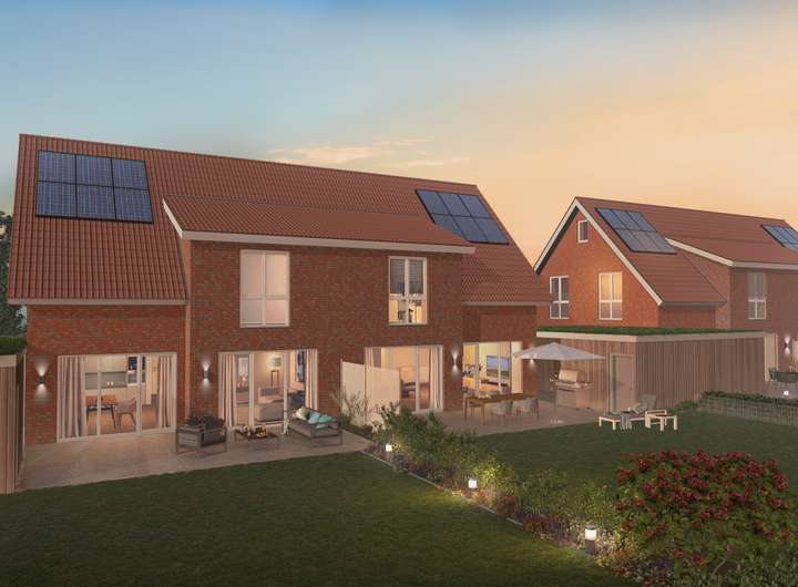 Hier entstehen in schöner Lage vier Doppelhaushälften, die modernes Design mit höchstem Wohnkomfort verbinden.