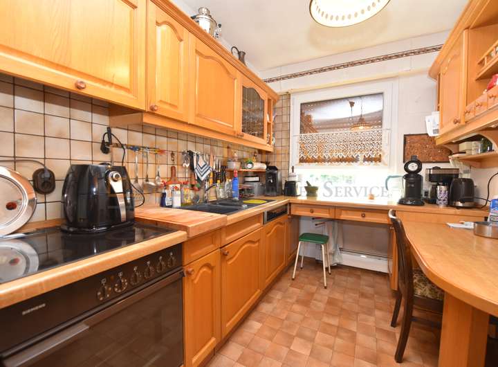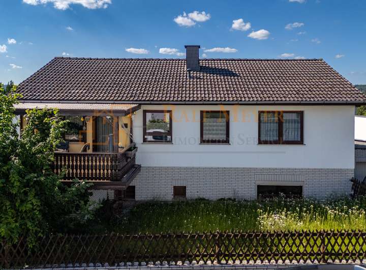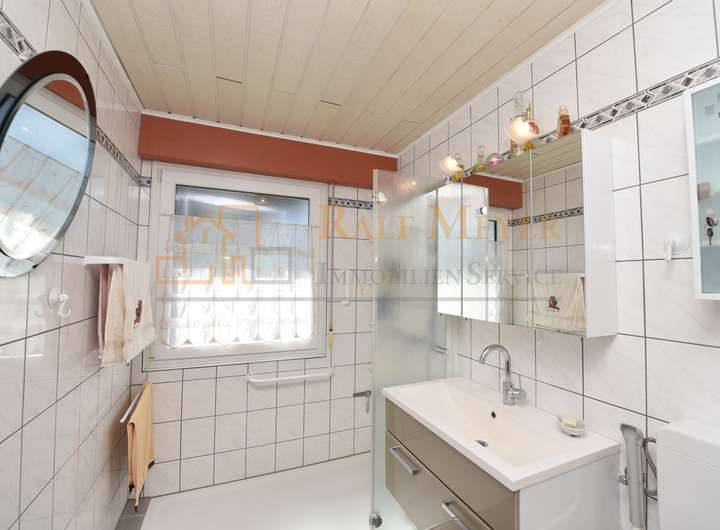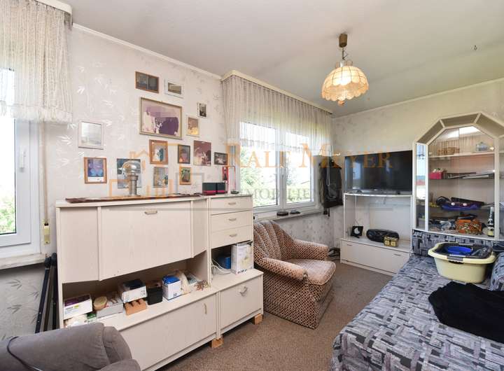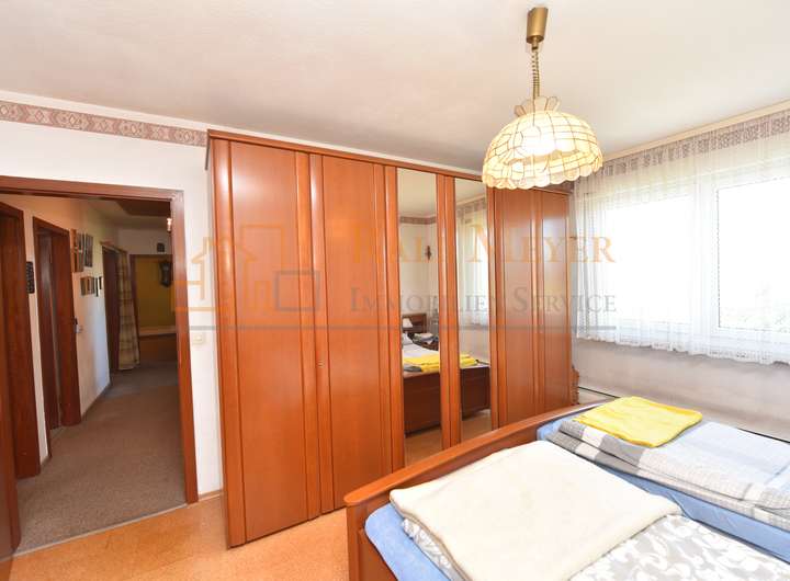 Das freistehende Haus teilt sich in Erd- und Obergeschoss. Die Hauptwohnung mit ca. 91m² Wohnfläche im Obergeschoss besteht aus einem komfortablen Wohn- und Essbereich, einer Küche mit Einbauküche, einem Duschbad, 3 Schlafzimmern in ansprechenden Größen sowie einem überdachten Balkon.