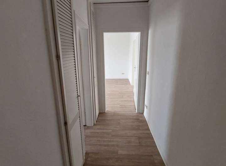 Die frisch renovierte Wohnung wurde mit PVC-Belag in Laminat-Optik ausgestattet.