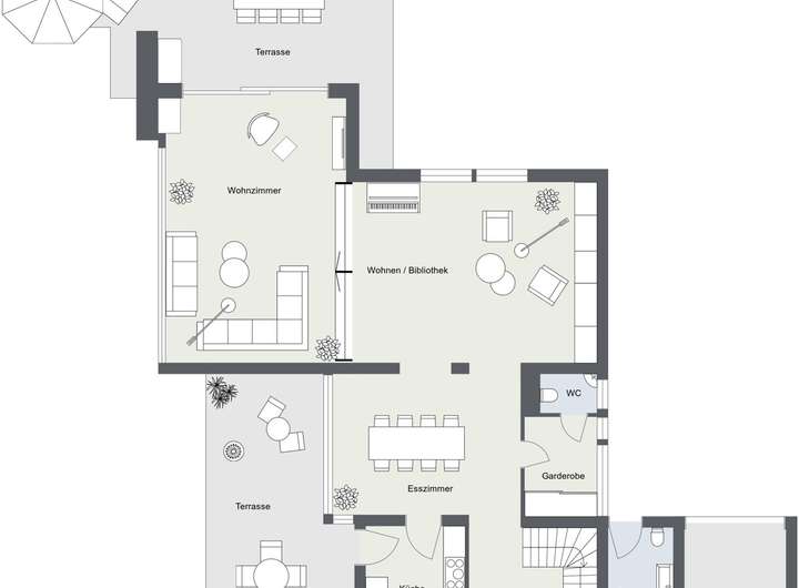 - Zwei Terrassen und zwei Balkone