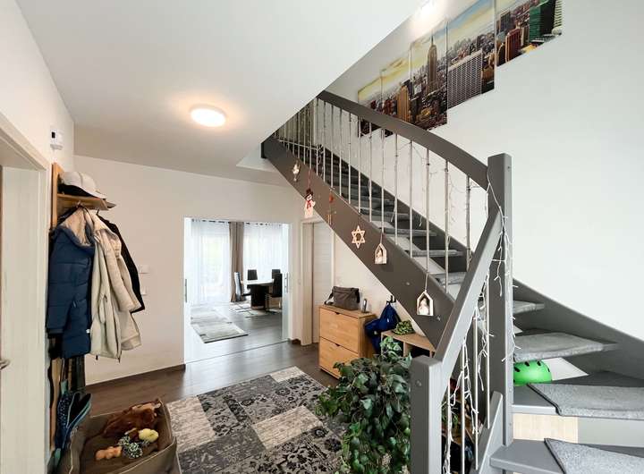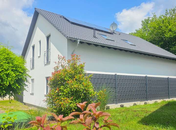 Dieses neuwertige Einfamilienhaus in der idyllischen Ortschaft Netphen / Salchendorf, fertiggestellt im Jahr 2020, bietet auf zwei Etagen eine großzügige Wohnfläche von ca. 208m² und lässt keine Wünsche offen. Das moderne Haus besticht durch seine helle und freundliche Atmosphäre, die durch hochwertige Laminatböden zusätzlich unterstrichen wird. Die großzügige Raumaufteilung umfasst sieben Zimmer, darunter vier komfortable Schlafzimmer, die ausreichend Platz für Familie und Gäste bieten. Der offene Wohnbereich ist ideal für eine große Familie geeignet und das stilvolle Badezimmer rundet das Gesamtbild ab.
