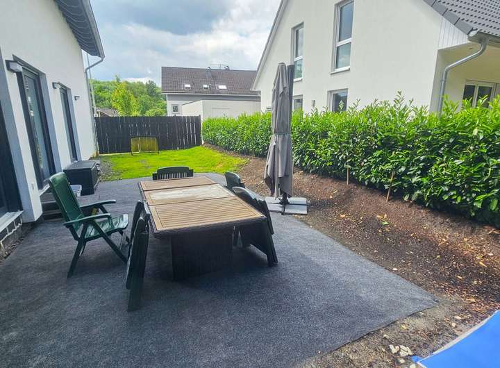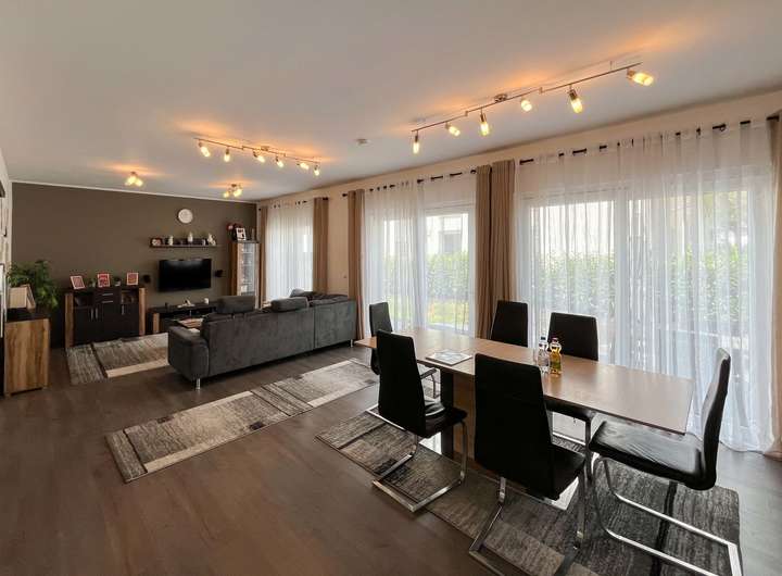 Die Einbauküche erfüllt alle Anforderungen und lädt zum gemeinsamen Kochen ein. Zusätzlichen Freiraum bietet die Terrasse, auf der Sie an warmen Tagen entspannen können. Den Garten können Sie nach Ihren eigenen Vorstellungen errichten. Ebenfalls gibt es einige Highlights im Haus, wie das eigene Heimkino-Zimmer.