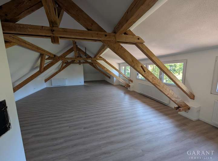 Das Dachgeschoss beherbergt eine offene Studiowohnung mit ca. 100 qm Wohnfläche, Küche und Duschbad - ideal als Loft, Atelier oder großzügige Singlewohnung.