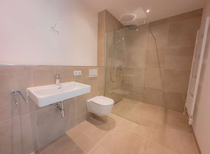 • Bodengleiche Dusche mit Echtglasduschabtrennung